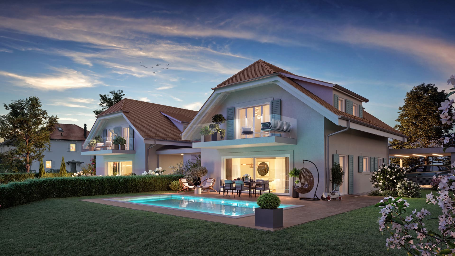Situé à Founex, Villas Amara est un projet exclusif de deux villas mitoyennes de 175 m² séparées par un couvert, alliant élégance et confort. Spacieuses et lumineuses, elles offrent de grands sous-sols, de beaux jardins avec option piscine et une séparation par un couvert pour plus d’intimité. À l’étage, profitez d’une vue dégagée sur le lac et les Alpes. Idéalement placées, elles allient sérénité et accessibilité aux écoles, commerces et axes routiers.